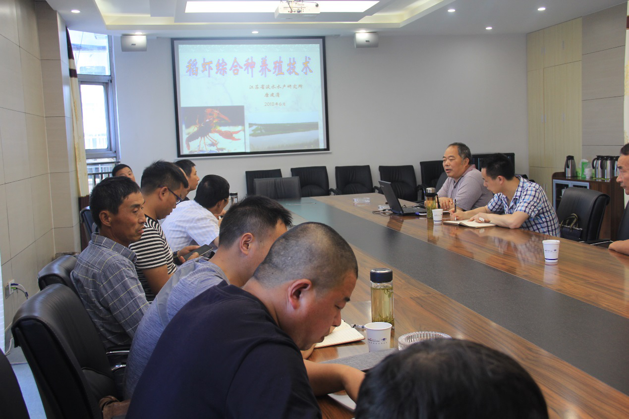 近日,吴霆名师工作室特邀江苏淡水水产研究所唐建清研究员,为工作室学员以及稻田综合种养生产管理人员进行稻田综合种养技术培训。