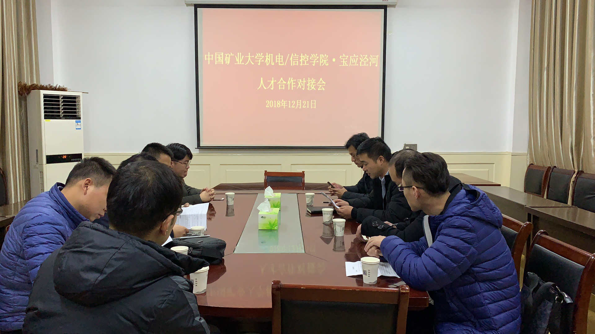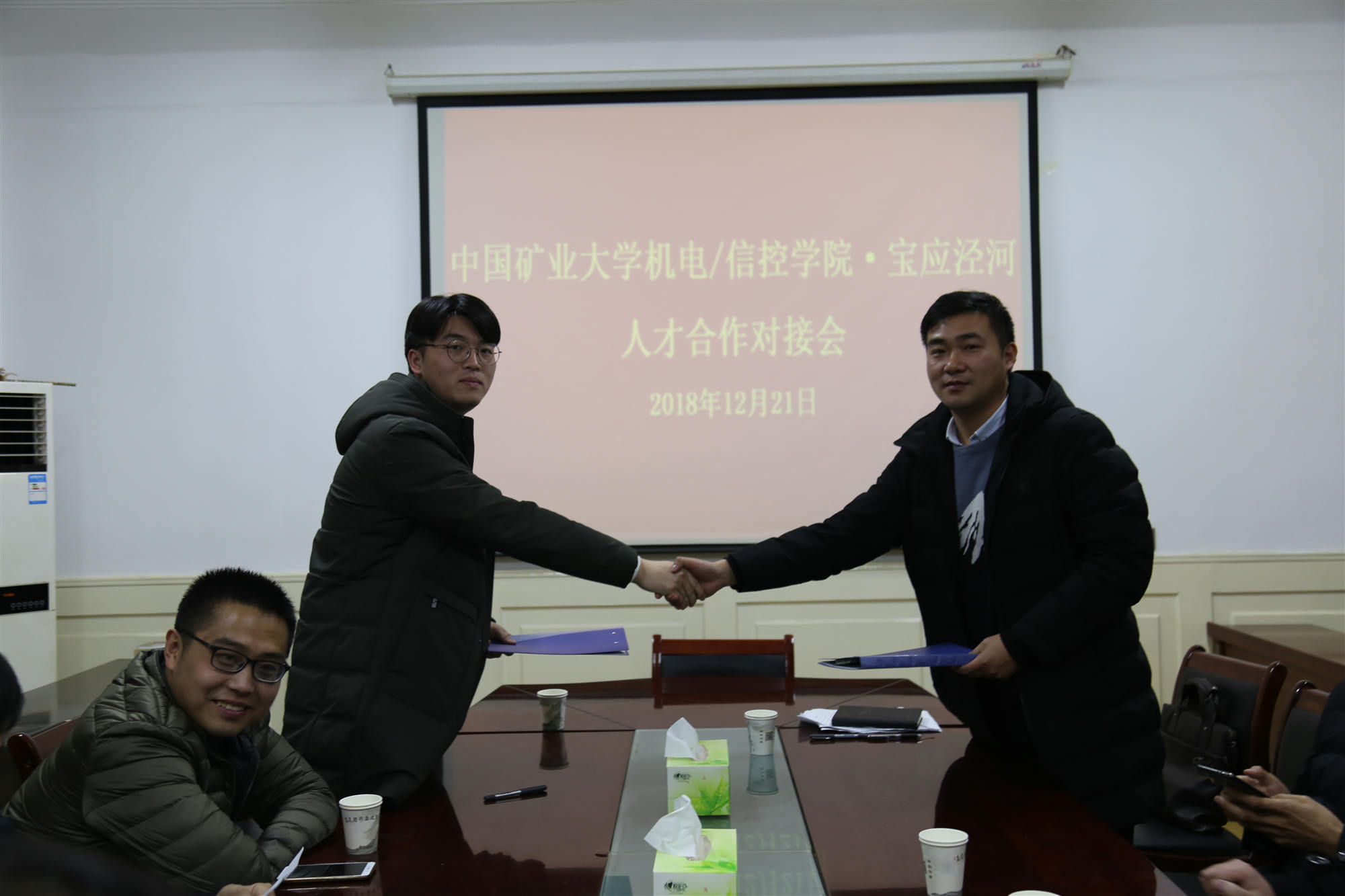 参观结束后,在镇政府会议室召开了中国矿业大学机电/信控学院˙宝应泾河人才对接会。会上,组织委员周伟向在座的博士详细介绍了泾河镇的基本情况,扬州市相关人才奖励政策以及非公企业的科技人才需求,希望各位博士能够结合自己所从事的专业特色与我镇的非公企业进行深度合作,达成互利共赢共识,开创产学研的新局面。最后,学院老师与我镇签订了产学研人才合作框架协议。