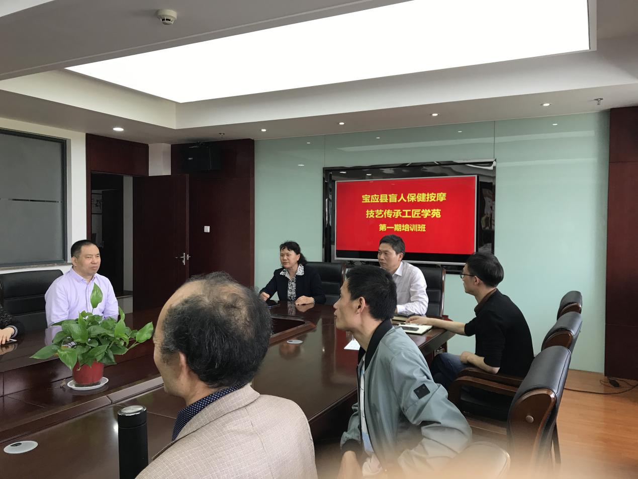 近日,盲人保健按摩技艺传承“工匠学苑”首期培训班开班仪式在县残联中心举办。县残联理事长谢爱华、副理事长高德明,县盲协主席苗挺龙,以及来自4个镇共6名视力残疾人学员参加开班仪式。