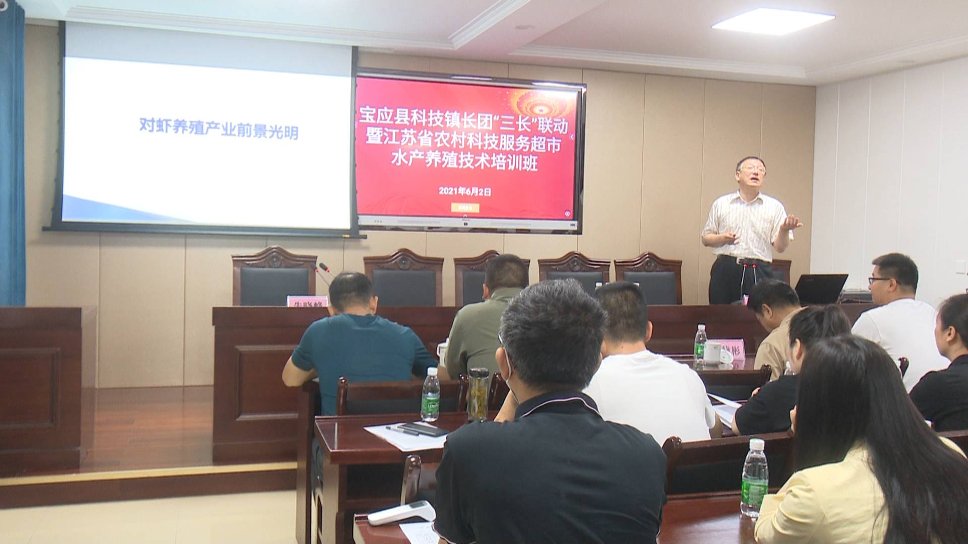 培训会上,中国科学院海洋研究所研究员王雷等3名专家分别就“南美白对虾内陆淡水区域养殖新模式与产业趋势”“小龙虾集约化可控式繁育与反季节养殖新模式”“鱼虾混养模式案例分享与虾蟹混养新模式推介”进行授课,让参训人员对养殖新技术、新经验有了更多的认识。