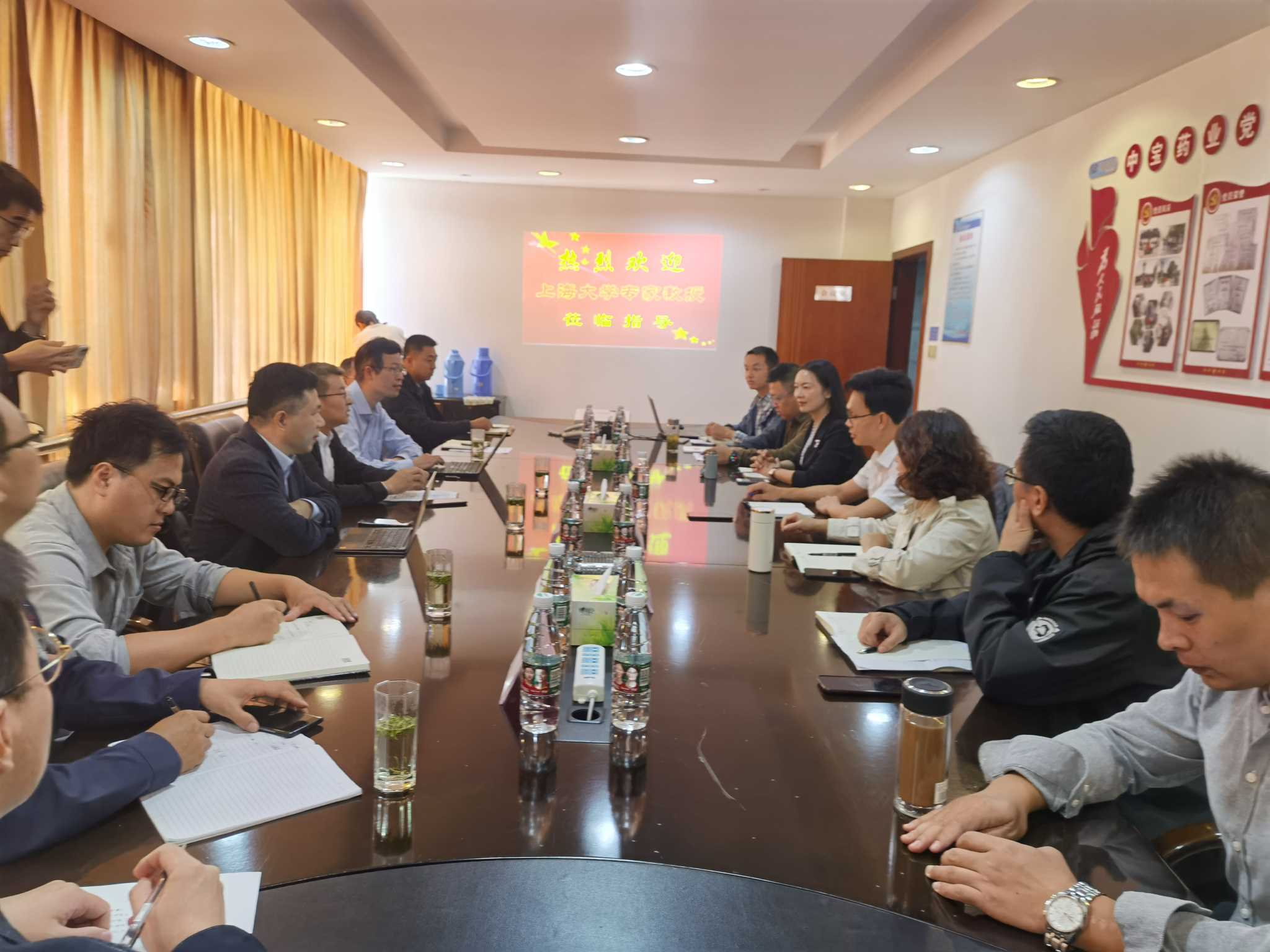 在扬州中宝药业公司召开的座谈会上,苗中华教授首先详细介绍了上海大学机电工程与自动化学院学院概况及科研成果,生命科学学院副院长肖俊杰教授结合自身研究方向介绍心力衰竭相关研究成果。