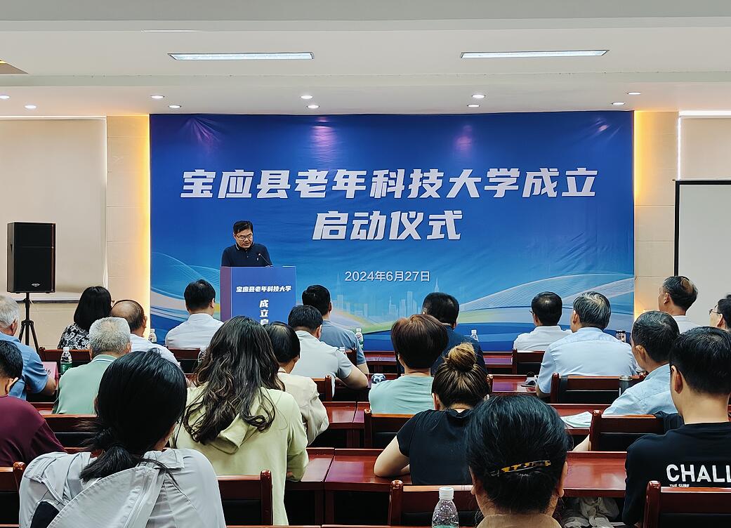 6月27日,由县科协、县老科协共同筹建的县老年科技大学揭牌成立,这也是扬州市首所县级老年科技大学。江苏省科协科普部一级调研员吴科明,宝应县人民政府副县长、县经济开发区党工委书记丁子建出席并讲话,共同为县老年科技大学揭牌。扬州市科协党组成员、副主席徐乐东,江苏省科普服务中心副主任刘春祥,宝应县老科技工作者协会会长夏征宇,宝应县委老干部局、宝应县科协等单位负责人出席会议。县老科技工作者协会、安宜镇社区干部、群众代表以及老年大学学员代表等70余人参加活动。