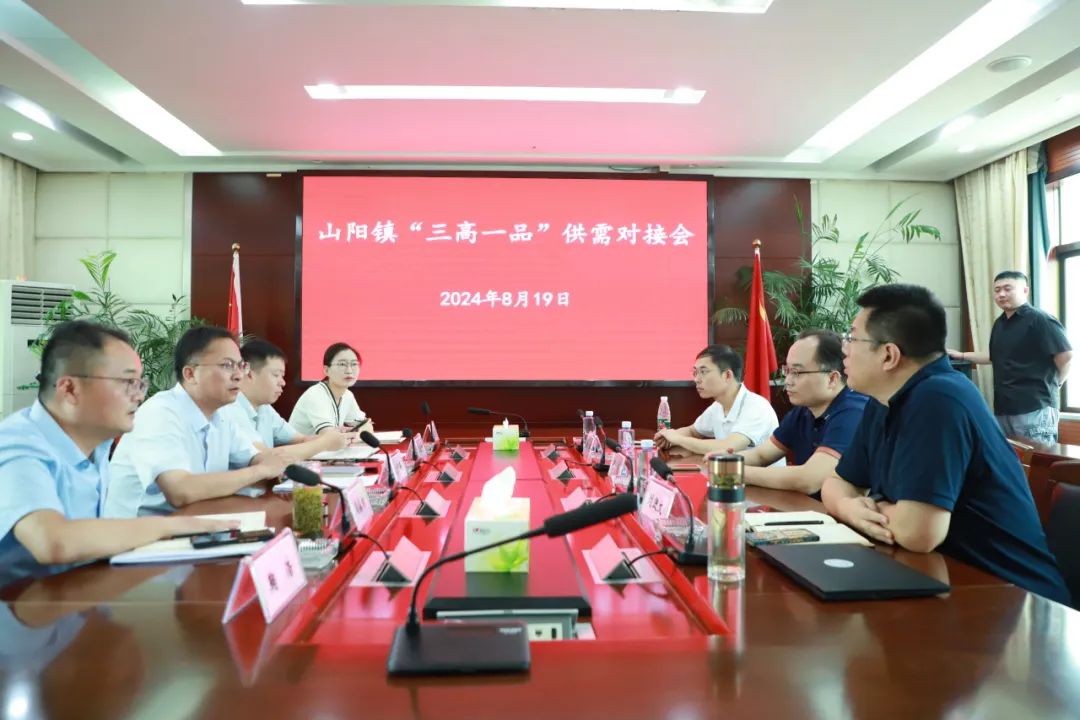 调研结束后,山阳镇主要领导与专家团进行座谈交流。会上,与会人员一起观看了《山阳镇宣传推介片》。山阳镇党委书记朱国平在致辞中表示对各位专家教授的到来热烈欢迎,期望各位专家教授充分发挥专业和技术优势帮助山阳破解技术难题、促进成果转化、推动创新创业。