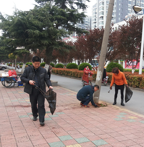 4月7日“世界卫生日”,县级机关工委、县爱卫办和县城管局联合组织县级机关党员干部集中开展环境卫生整治行动。 上午7:00,一千余名机关党员干部带着铲子、钢刷、火剪、笤帚、抹布等清洁工具,走上城区各主要街道,清理白色垃圾、杂草、牛皮癣,净化、美化环境;并向行人及周边居民开展宣传,劝导他们日常讲文明、讲卫生,积极参与爱国卫生运动,共同营造清洁有序、健康宜居的生产生活环境。