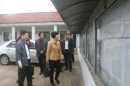 县委常委、组织部长王友芳查看戈店村党务、村务公开栏