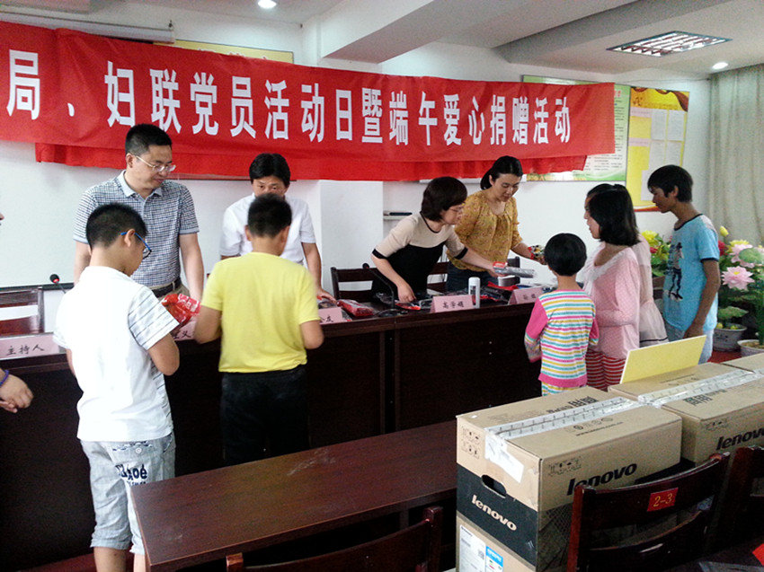 6月20日 下午,县妇联、县统计局在西安丰镇苗圃村开展了党员活动日暨端午爱心捐赠活动,为苗圃村儿童快乐家园捐赠了电脑,并为30多名留守儿童送去了学习用品和爱心粽,让孩子们感受到了亲情和温暖。