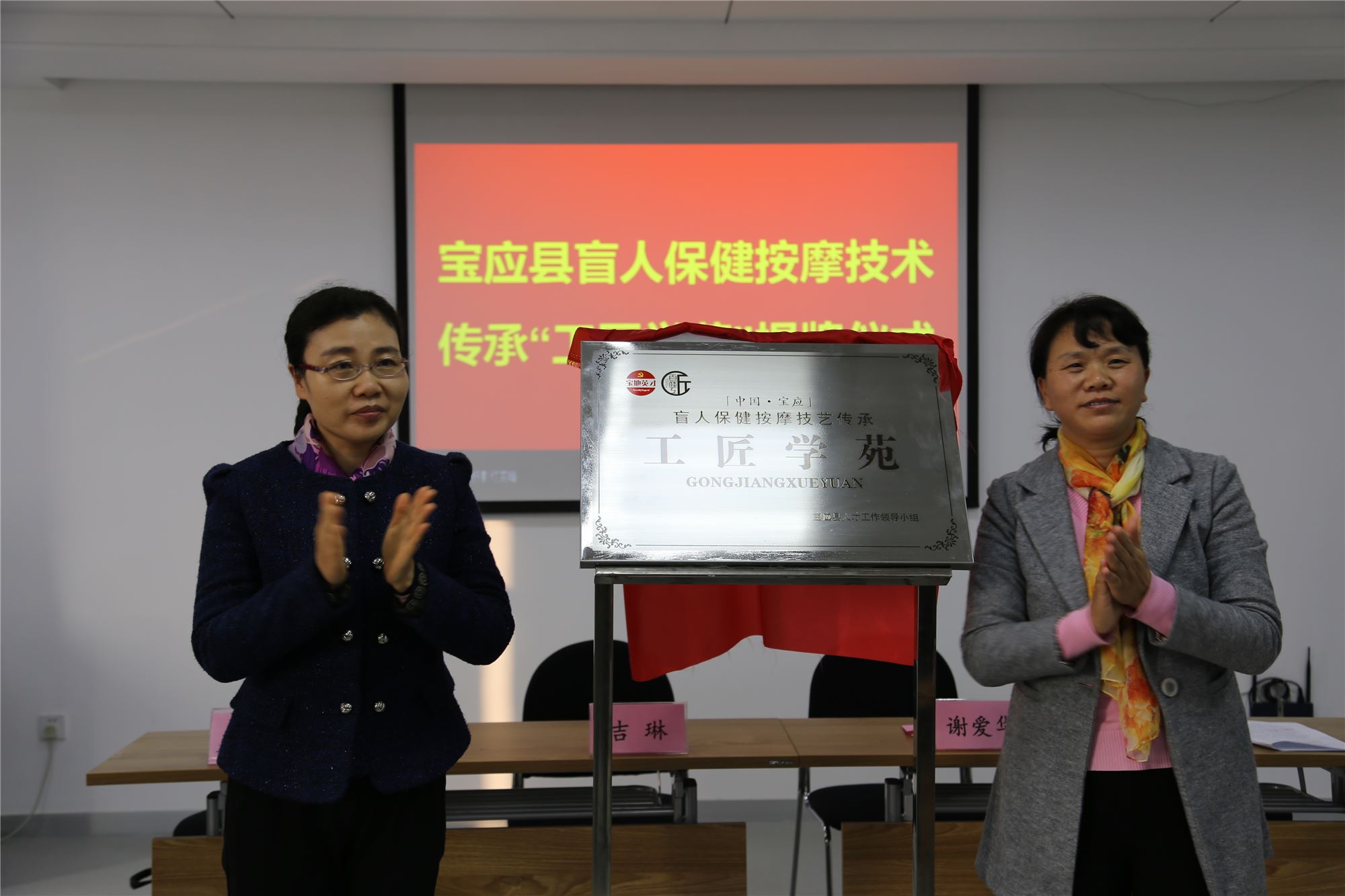 11月20日,宝应盲人保健按摩技艺传承“工匠学苑”揭牌仪式在县残联举行。县委常委、组织部长吉琳,县人才办、县残联和县残工委部分成员单位负责同志,县盲人协会盲人代表等出席活动。