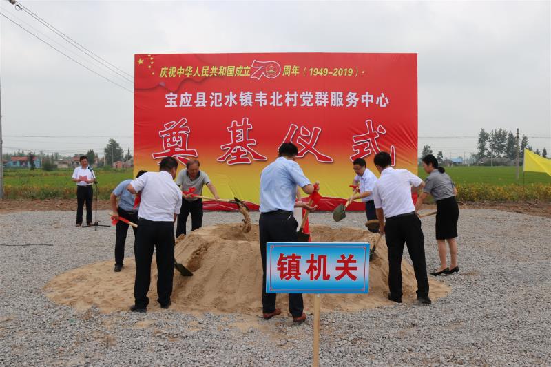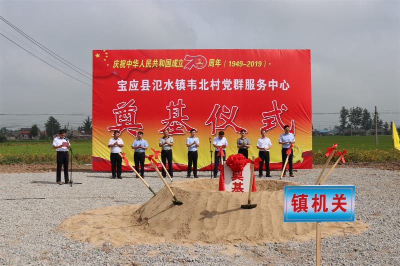 9月10日 上午,氾水镇又一家党群服务中心举行开工奠基仪式。镇党委副书记、镇长邹恺,江苏金茂化工医药集团董事长杨群,镇人大主席刘伟美,镇党委副书记邓剑,以及镇全体机关干部、各村(居)支部书记、部门单位负责人,工程施工单位及工程监理单位负责人,韦北村全体村干部、党员群众代表等参加奠基仪式。仪式由党委副书记华来军主持。