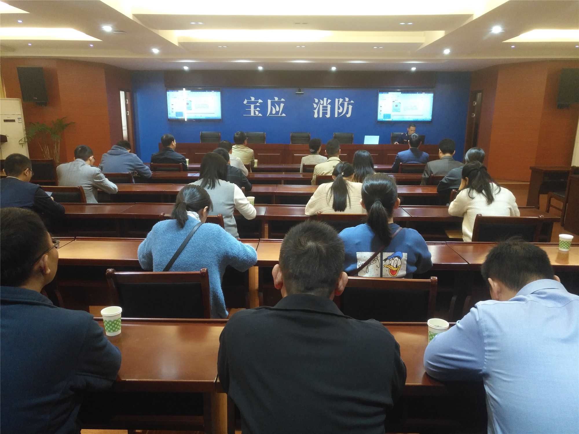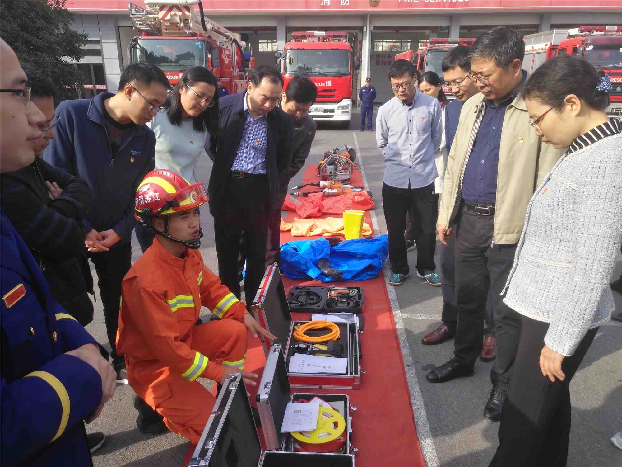 在消防战士的讲解指引下,部机关党员干部逐一参观了解现役消防车辆和常见消防工具的使用方法,并进行了灭火器灭火的实践演练。随后,消防战士演练了日常徒手攀登楼房训练项目,并为参加活动的党员干部上了一期消防专业知识培训。