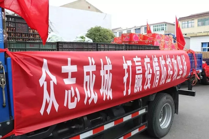2月6日下午,阵阵寒风之中,6辆卡车有序地从宝应县城向广洋湖镇驶去,车上满载着大米、豆油、猪肉、鸡蛋、鲜鱼、蔬菜、水果等群众生活的必需品。而最引人注目的是卡车上飘扬的一面面鲜红的党旗,原来车上装载的这2万余斤近18万元的物资是以全国劳动模范李永政、宝粮集团党总支书记杨光为代表的党员种养殖大户和企业负责人向广洋湖镇人民无偿捐赠的。