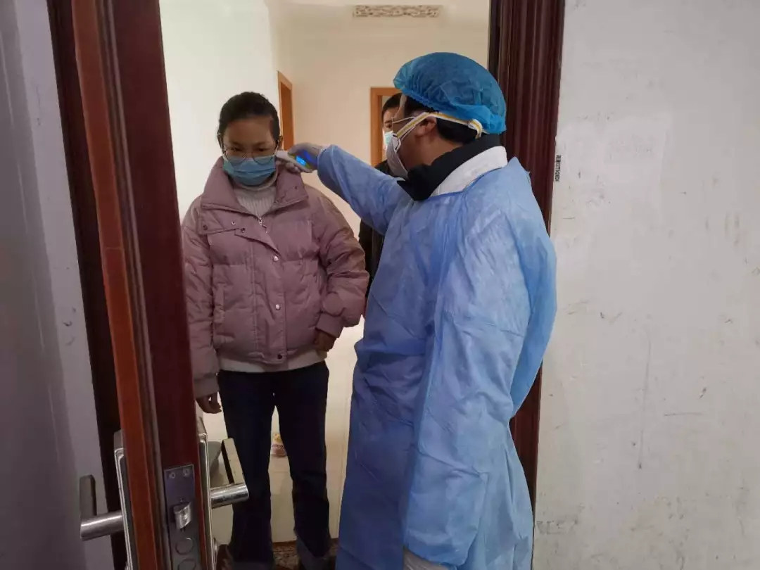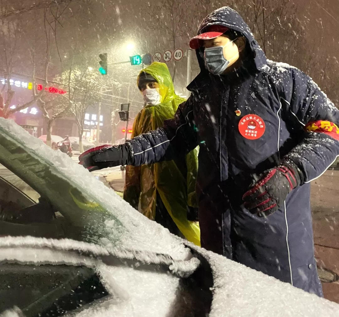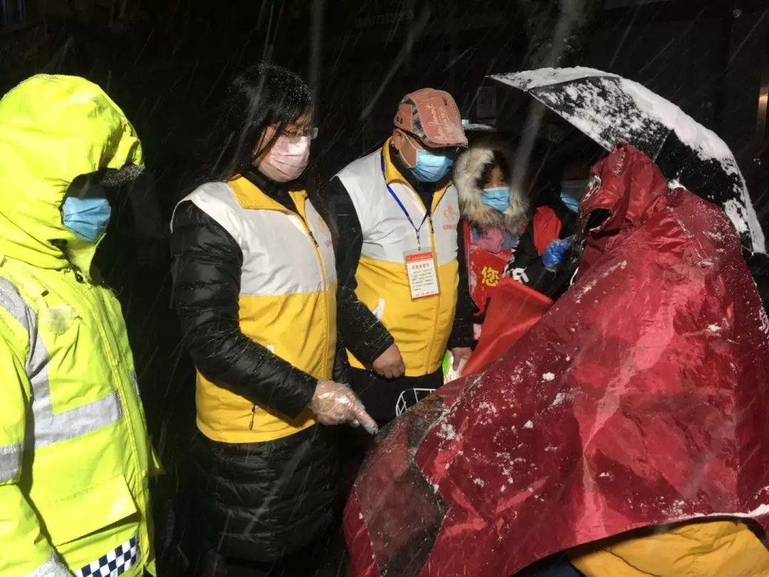 突击队党员志愿者冒雪前往居民家中检测体温
