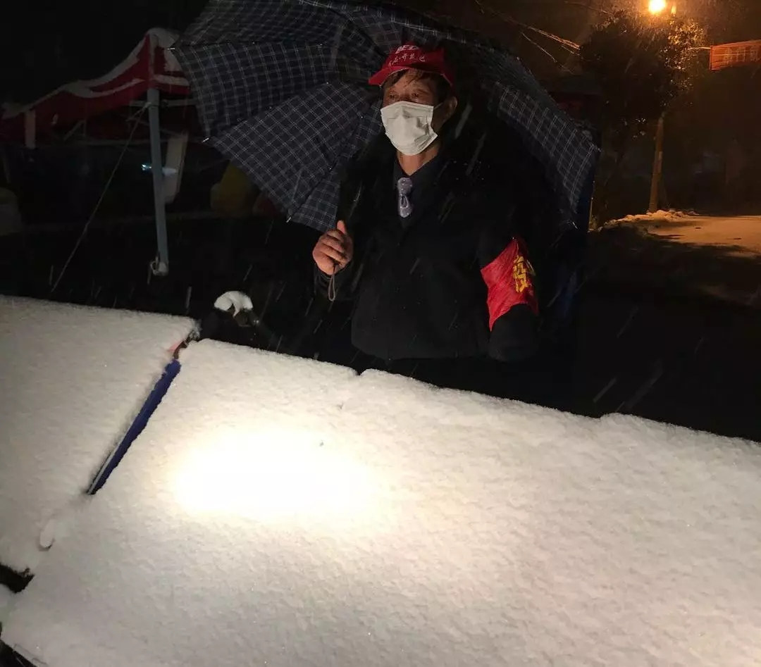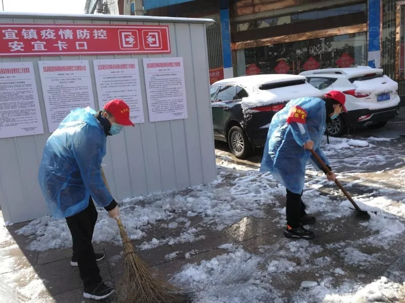 安宜镇学墩社区党员干部冒雪站岗