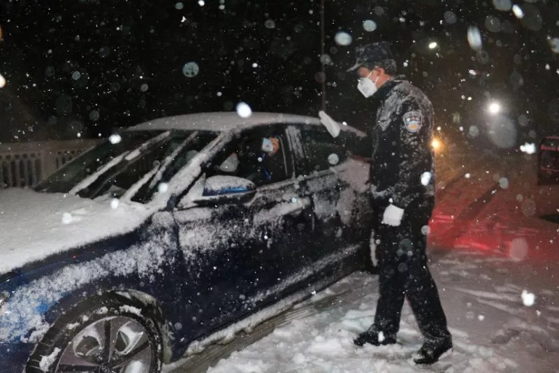 交通运输执法党员风雪中坚守宝应高速道口,逐车逐人筛查入宝人员