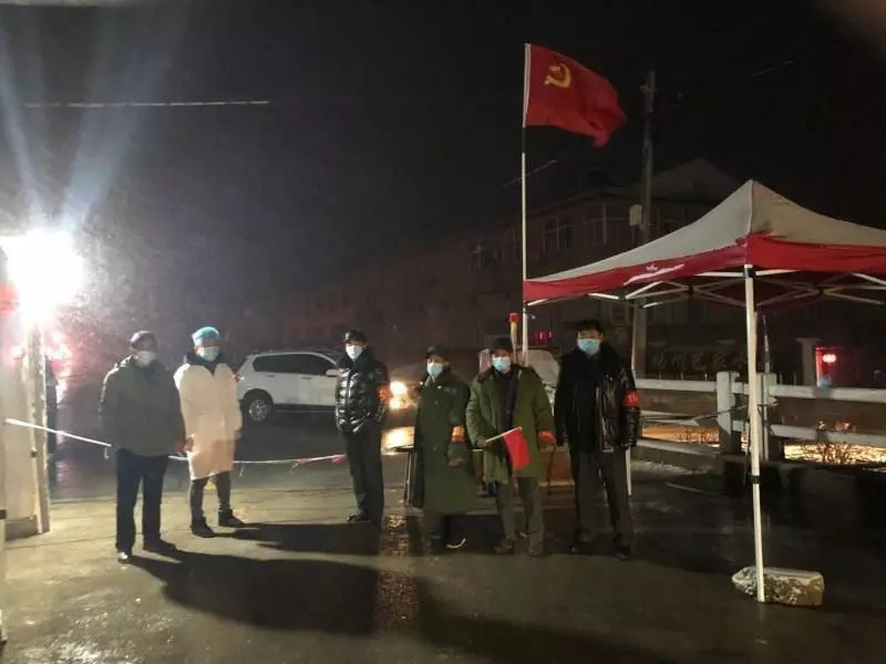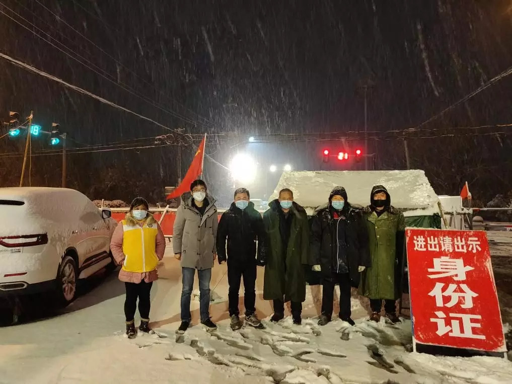 曹甸镇曹南村党员干部雪夜执勤,把守曹甸集镇防线