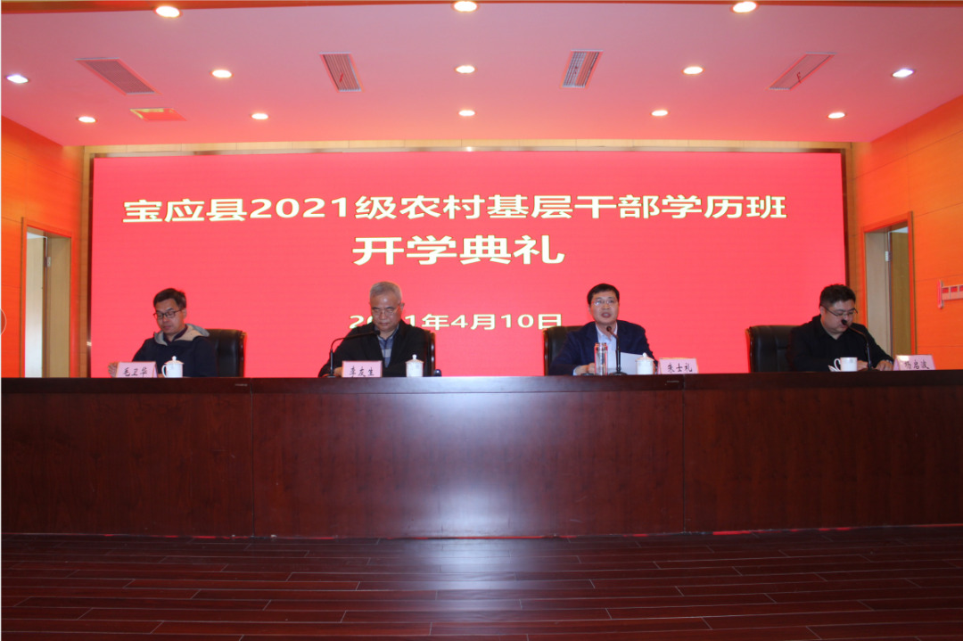 4月10日上午,宝应县2021级农村基层干部学历班开学典礼在县委党校报告厅举行。南京农业大学继续教育学院院长李友生,党总支副书记(主持工作)毛卫华,县委组织部副部长、县委县级机关工委书记朱士礼,县委党校常务副校长杨启波等出席典礼,2021级学历班全体学员及教员等近200人参加典礼。