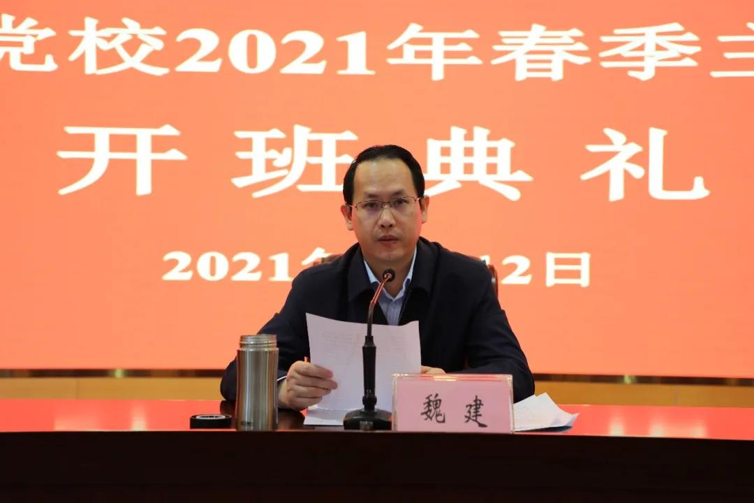 4月12日,县委党校2021年春季主体班正式开班。县委常委、组织部部长,县委党校(县行政学校)校长魏建出席开班典礼并讲话。