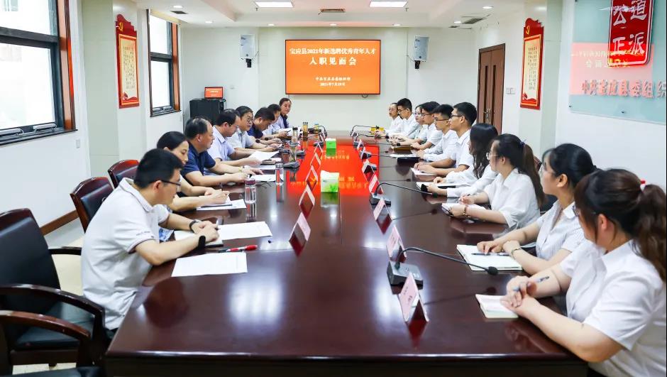 7月19日,宝应县召开市选聘优秀青年人才入职见面会,县委常委、组织部部长魏建出席会议并讲话,县委组织部常务副部长、公务员局局长胡安祥主持会议。