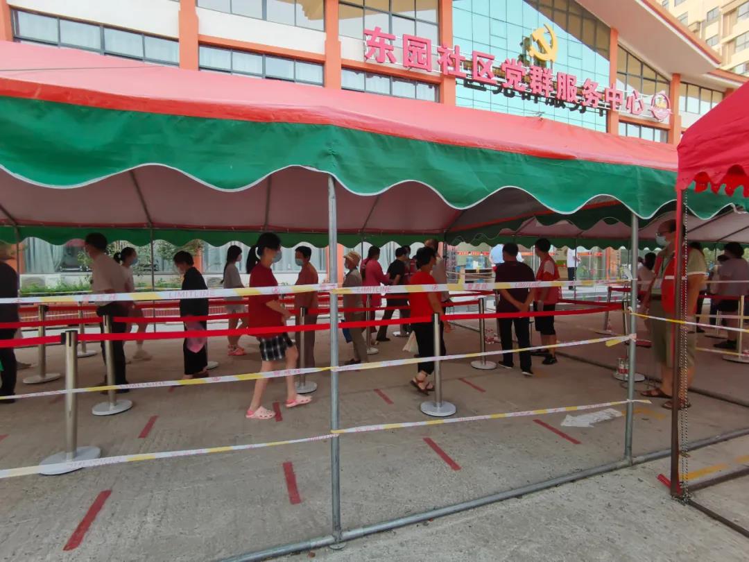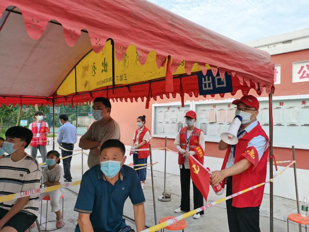 在党群服务中心内成立疫情防控工作指挥部,党组织书记担任“指挥员”,部署大规模核酸检测、入户排查中高风险地区来宝返宝人员等工作。利用标准化篮球场、文化大舞台等空旷地作为村(社区)核酸检测的场地,动员党员志愿者、入党积极分子等投身到疫情防控一线,按照“党委带支部、支部带小组、小组带党员、党员带群众”的联合作战模式,切实做好疫情防控工作。