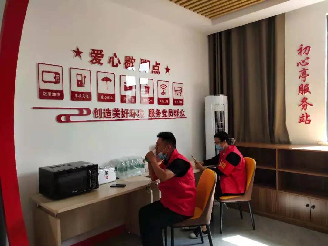 在“红色驿站”内为疫情防控一线工作人员和广大党员志愿者提供休息区域,24小时空调开放,为参与疫情防控的工作人员和志愿队伍免费供应口罩、消毒液、体温计、防暑降温药物,同时提供沙发、充电器、微波炉、饮用水、食品等,为一线工作人员和党员志愿者提供生活上的便利,让他们以更加饱满的状态投入到疫情防控战斗中去。