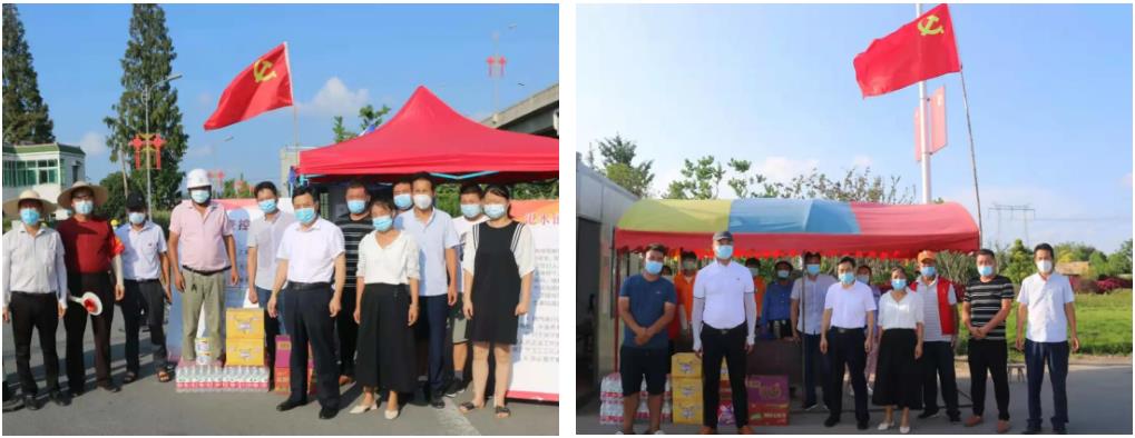 省乡土人才“三带”名人周必胜带领工作室成员开展一线慰问,为坚守卡口的工作人员送去冰红茶、矿泉水、蚊香等生活物资。