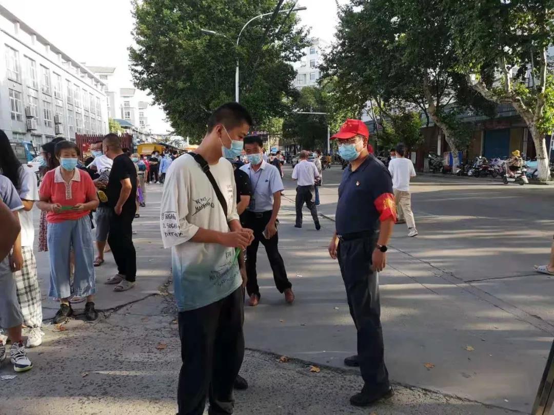 部领导胡安祥、朱士礼、蔡晓华全天驻点指挥核酸检测现场秩序维持工作。