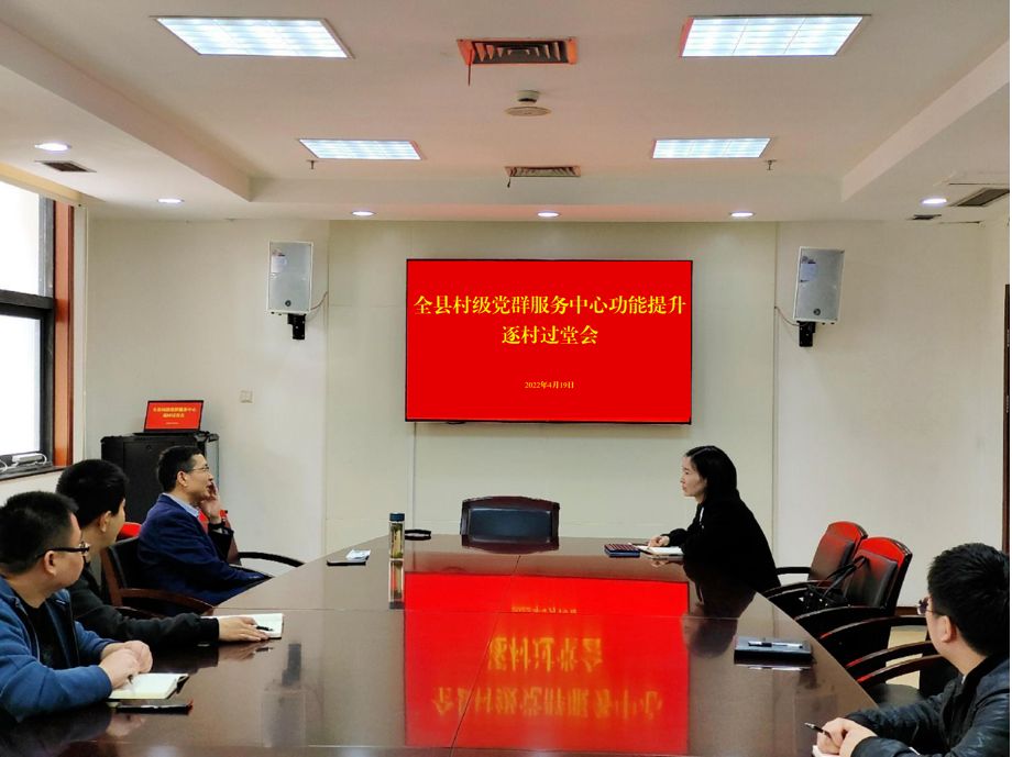 各镇(区)组织委员对所有村级党群服务中心功能提升情况进行逐一汇报。县委组织部副部长、县委县级机关工委书记朱士礼参加过堂会,并对全县283个村级党群服务中心资源整合、功能提升、设施完善等方面进行逐村点评指导。