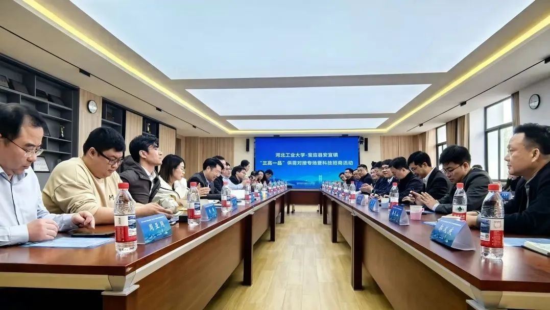 安宜镇党委书记王国成介绍全镇重点产业情况和人才科技需求。河北工业大学电气工程学院院长刘卫朋、电子信息工程学院教授刘照虹作高科技成果推介。县重点企业负责人就课题需求与专家进行交流,校企双方围绕“新型压电传感器技术的研发及产业化”“振动电机远程智能监测”2个项目现场签约。