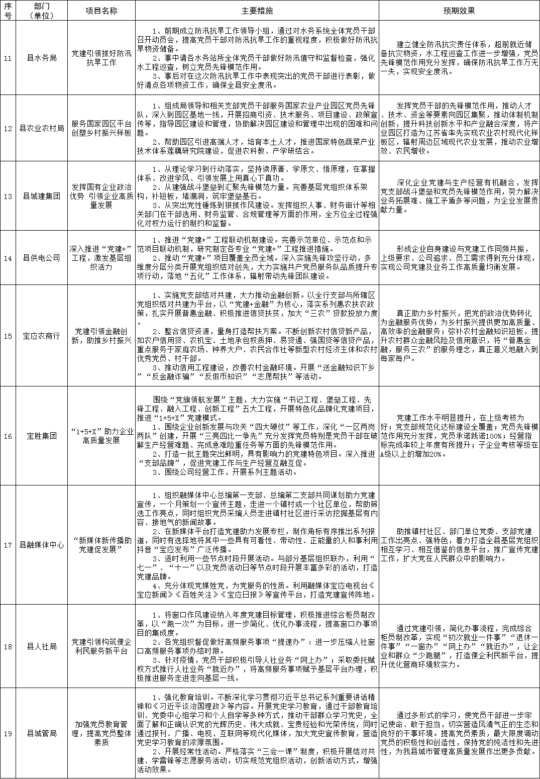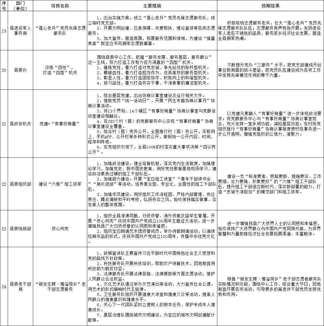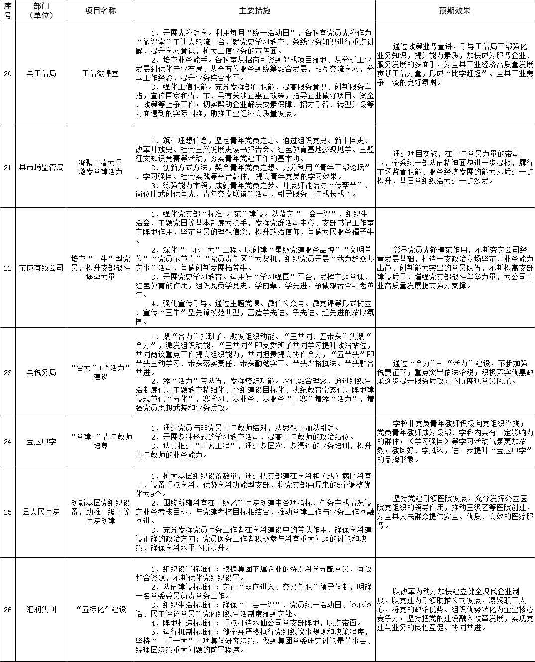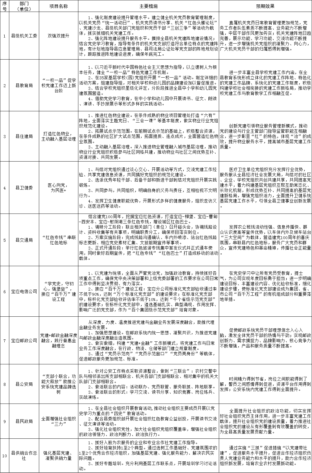 为强化党委(党组)抓基层党建工作责任,建立“书记带头抓、亲自抓”的工作责任制,全县各在城部门围绕2021年度基层党建重点任务,聚焦突出问题,明确了“双强双提升”等一批基层党建“书记项目”。现予以公示,接受广大党员群众监督评议。